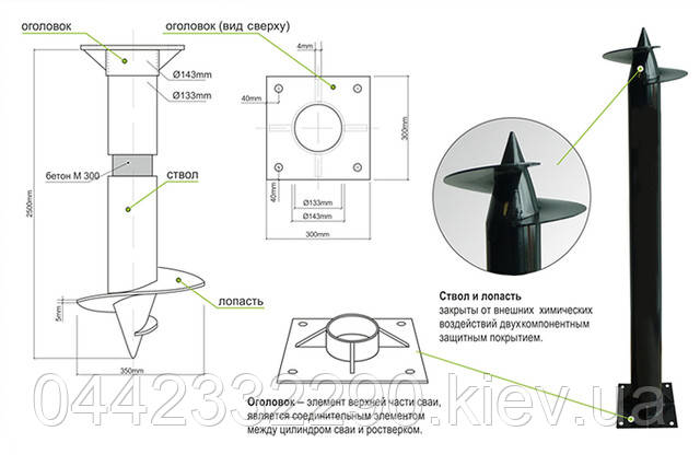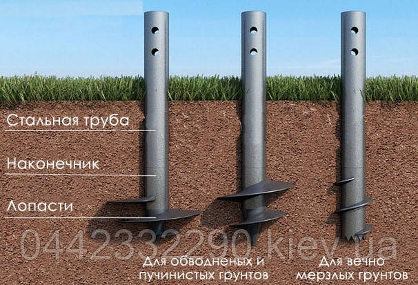 Палі можна підібрати практично для будь-якої глибини. Ось існуючі розміри гвинтових паль в довжину - см: 165, 180, 200, 250, 300 і далі через 50 см до 11 м. Укручування роблять за годинниковою стрілкою до упору (чи до деформації отвору для важеля).